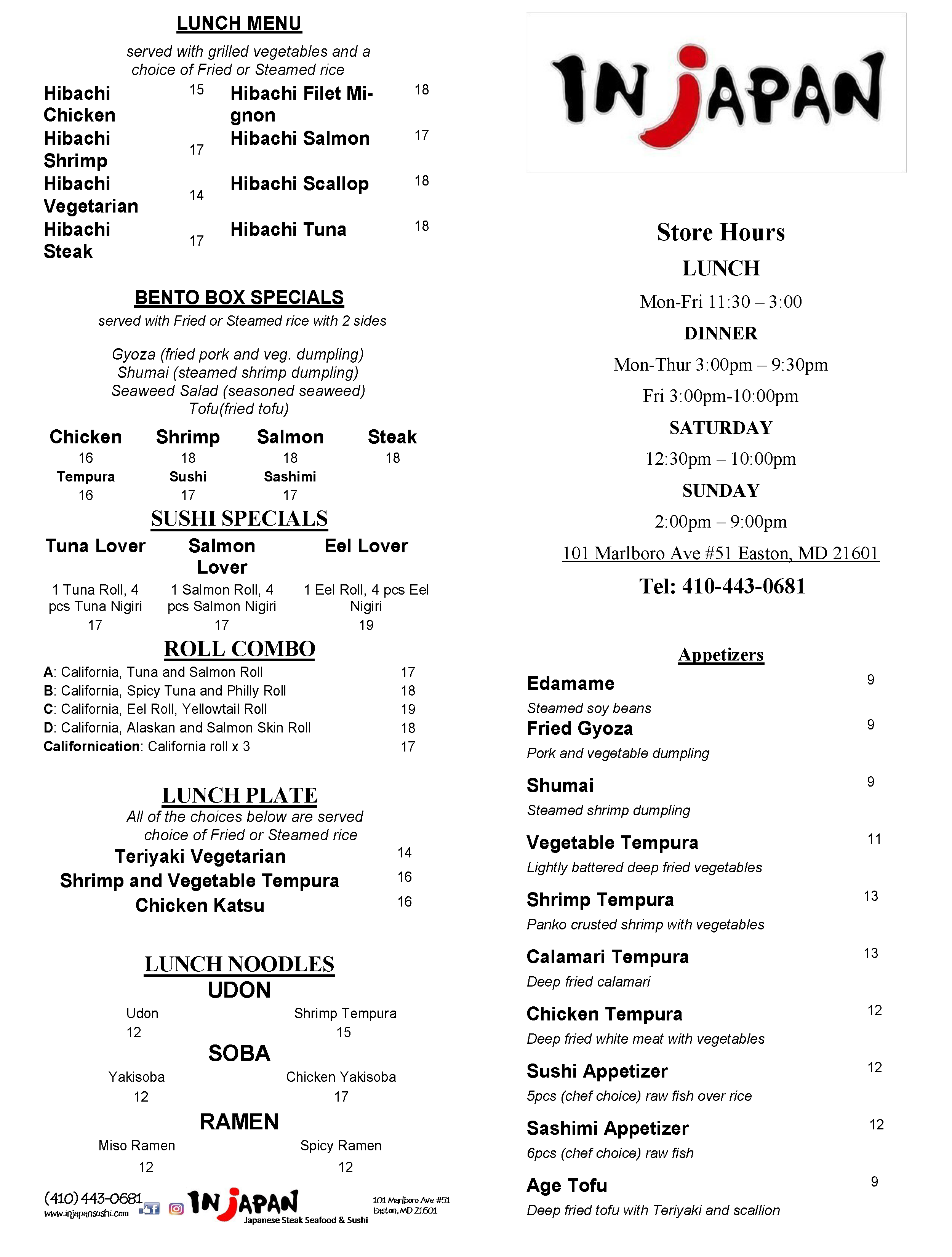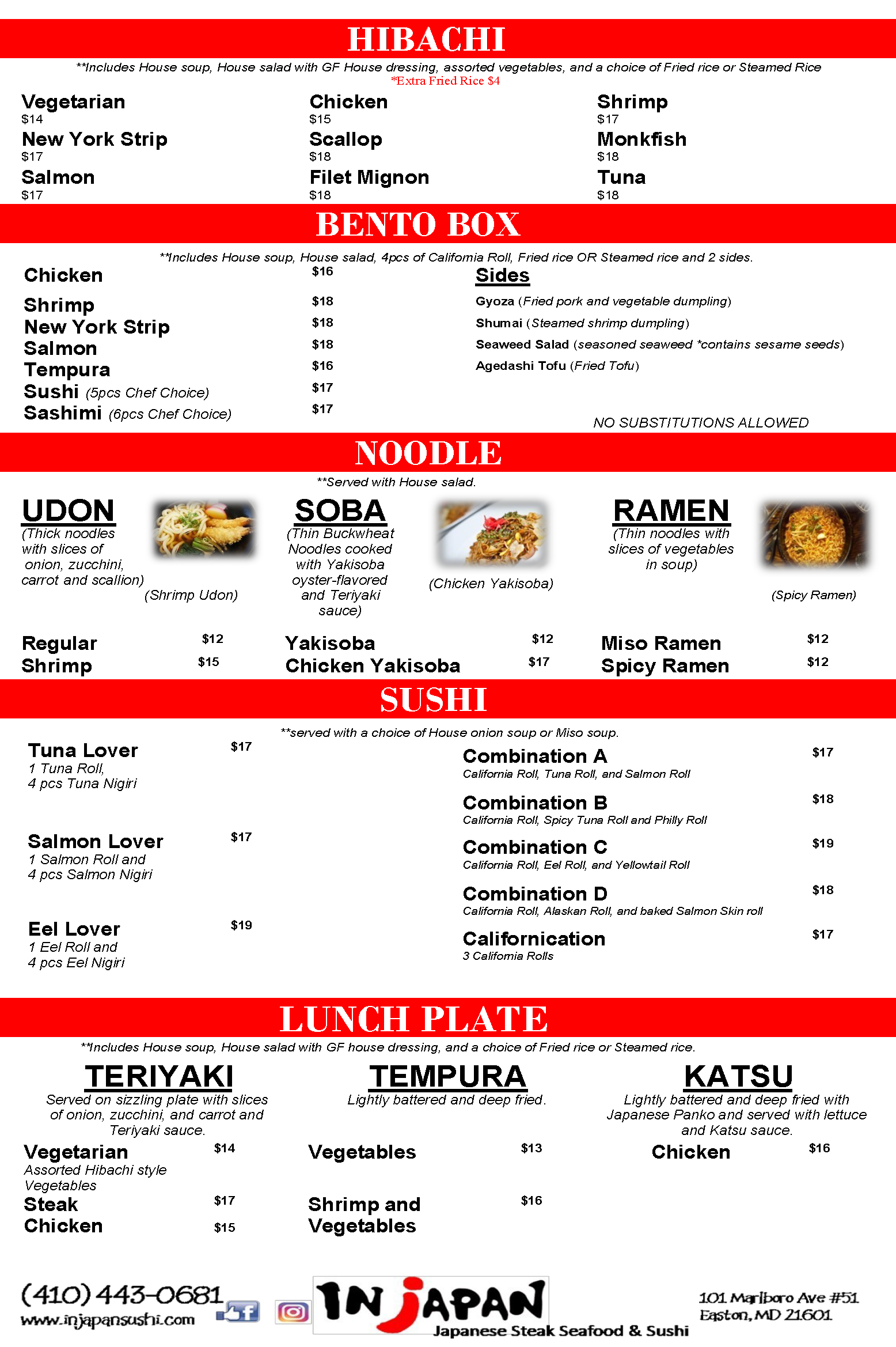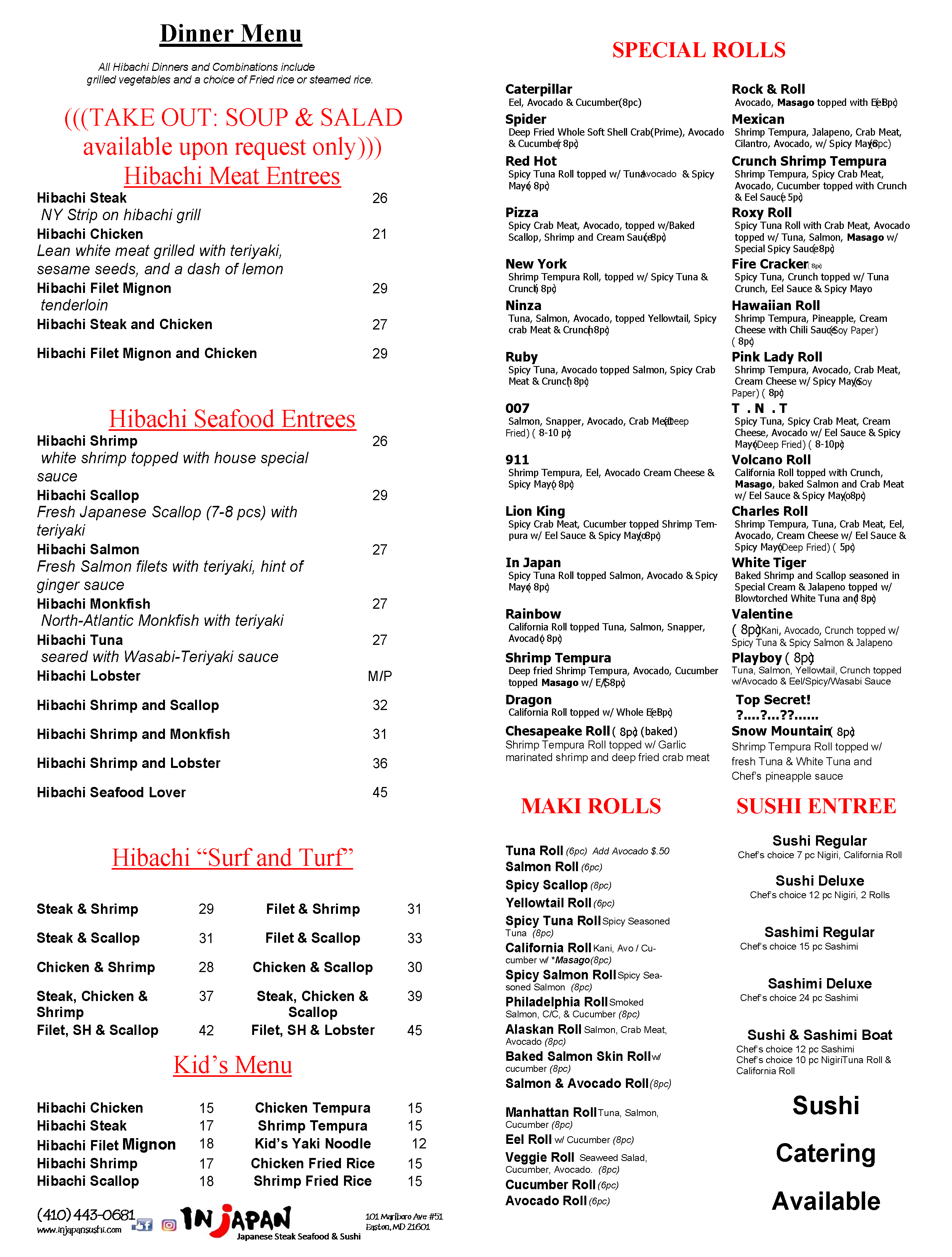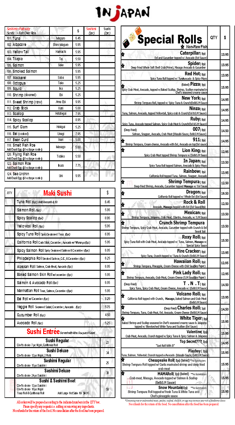 Sushi Menu